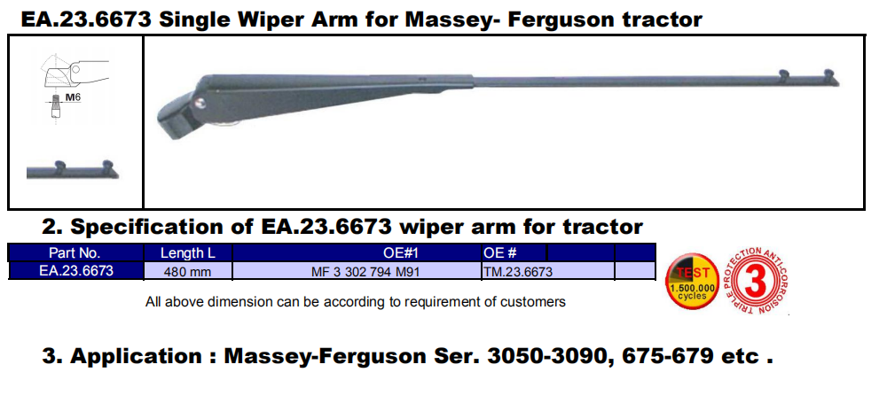 4. Application : Massey-Ferguson Ser. 3050-3090, 675-679 etc .