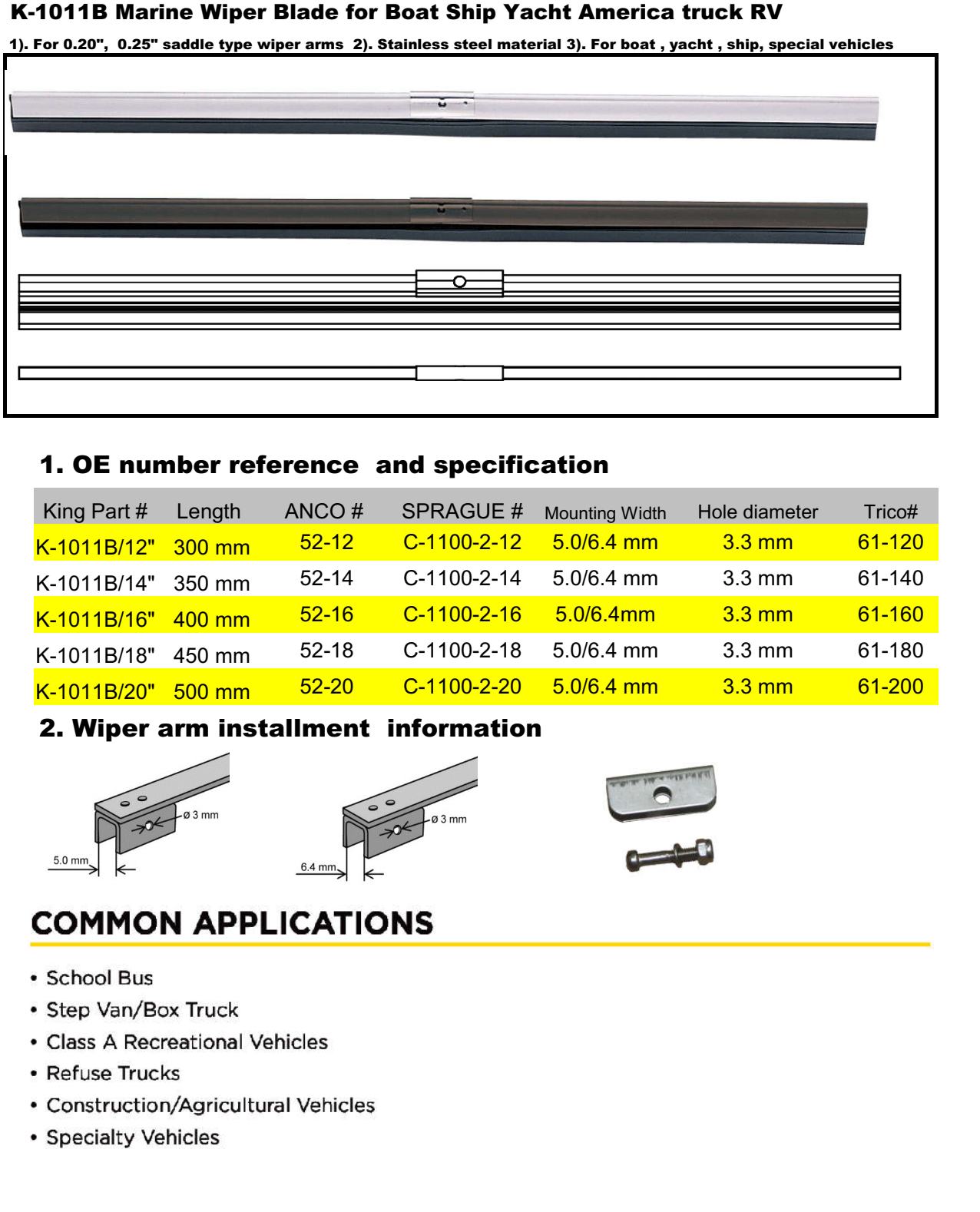 Trico# 61-120, 61-140, 61-160, 61-180, 61-200