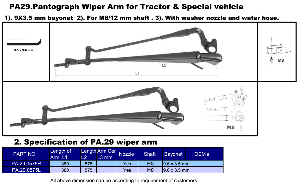PA.29 Panotgraph Wiper Arm For Special Vehicles.