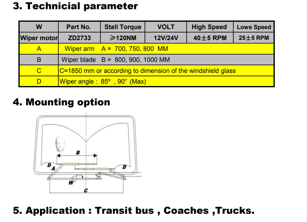 4. Length of the wiper blade : 800, 900 , 1000 mm.