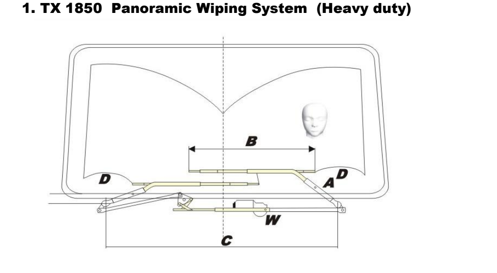 1. Center distance C= 1850 mm or according to dimension of the windshield glass.